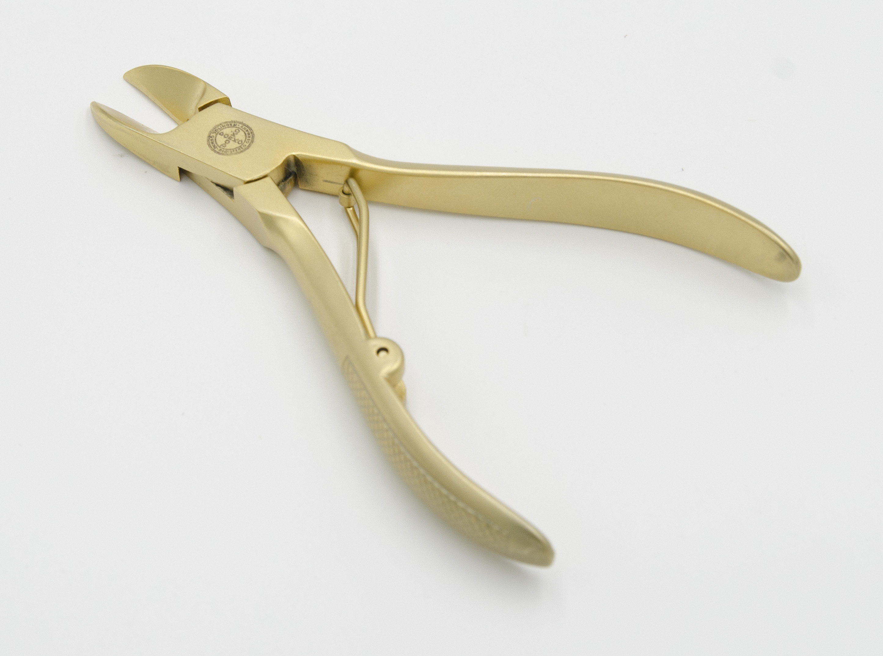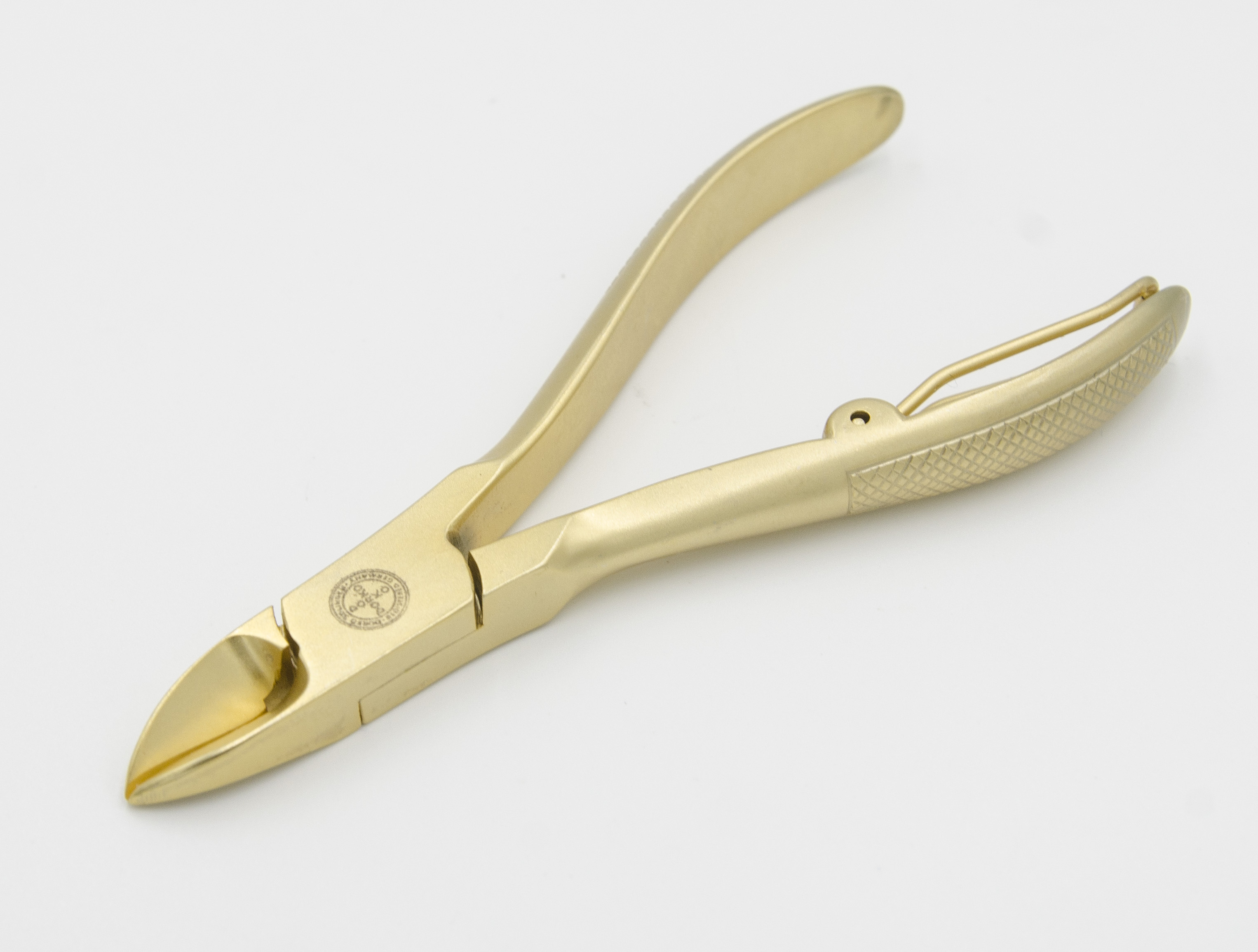 ОписаниеМаникюрные кусачки для стрижки ногтей Dorko Solingen в привлекательном позолоченным дизайне. Изготовлены из первоклассной нержавеющей стали с матовым покрытием, которое придает не только красивый внешний вид, но и дополнительную прочность, стойкость и долговечность.