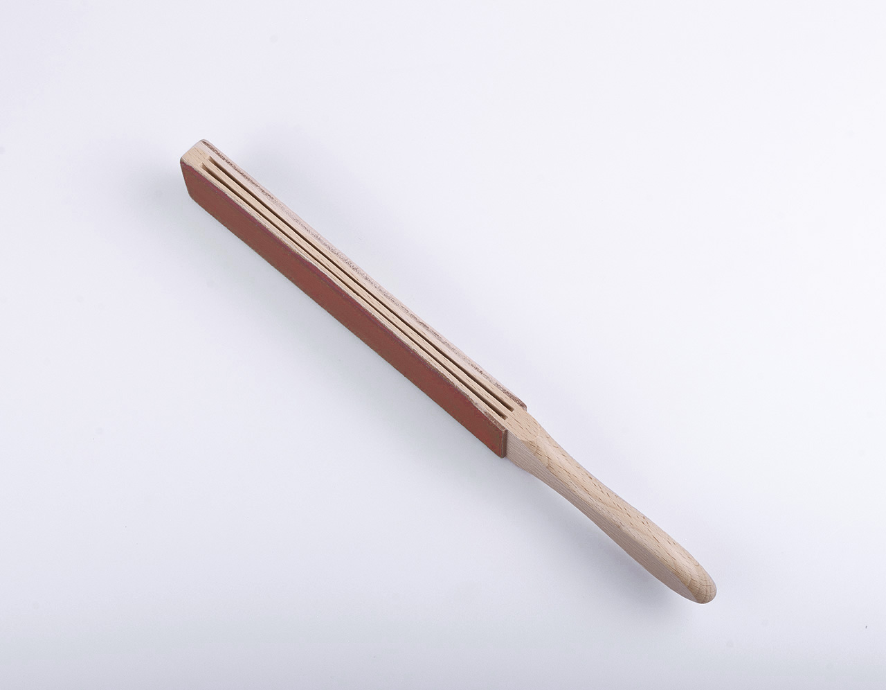 Кожа с красной пастой для более грубой правки на среднем абразиве. Данная процедура производится значительно реже и подходит для тонкой заточки опасной бритвы.