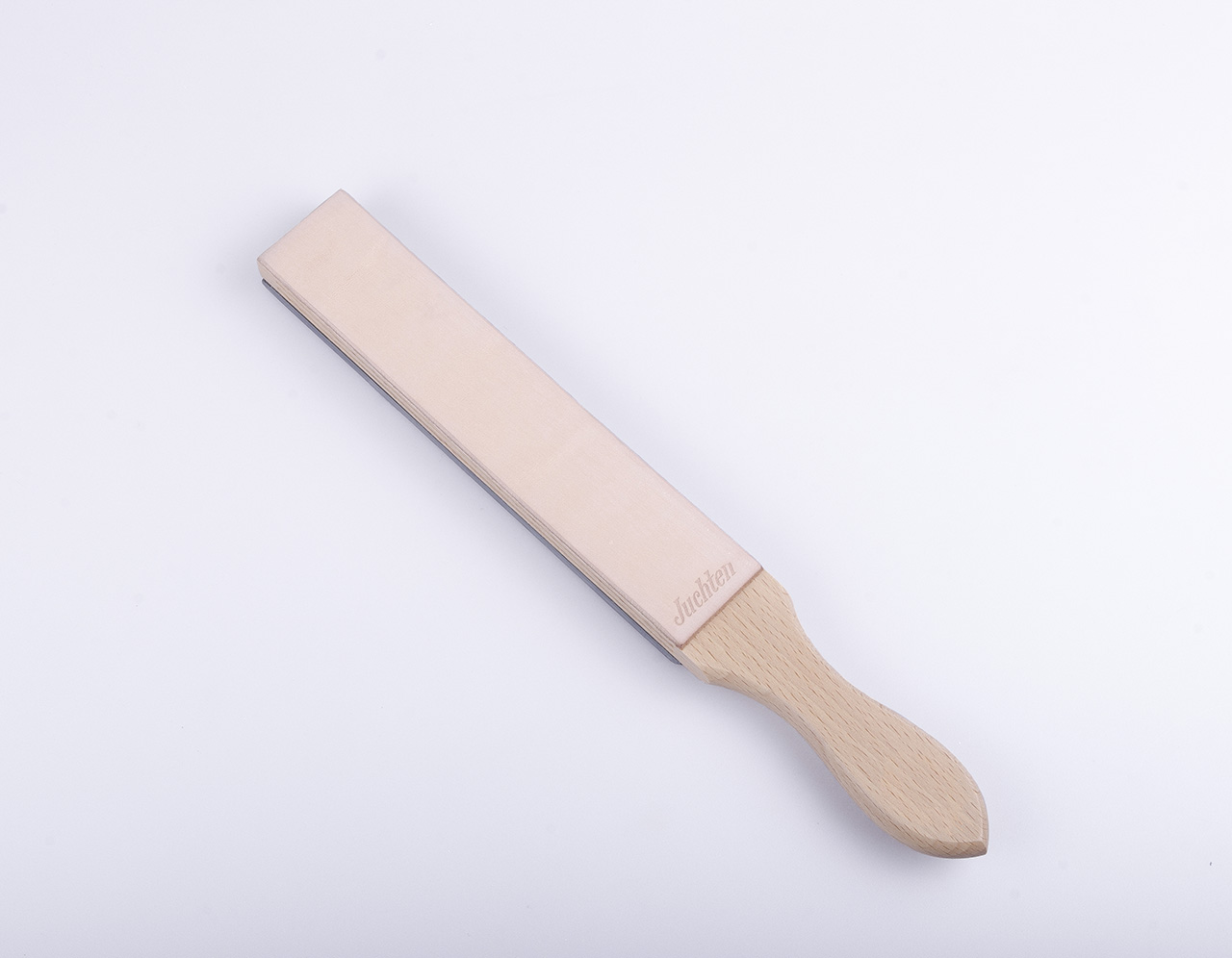 На чистой коже производится ежедневная правка бритвы, необходимая перед каждой процедурой бритья. Вторая сторона рекомендована для более сильной и агрессивной правки, когда лезвие бритвы немного затуплено и острие следует выровнять на абразивной стороне ремня.
