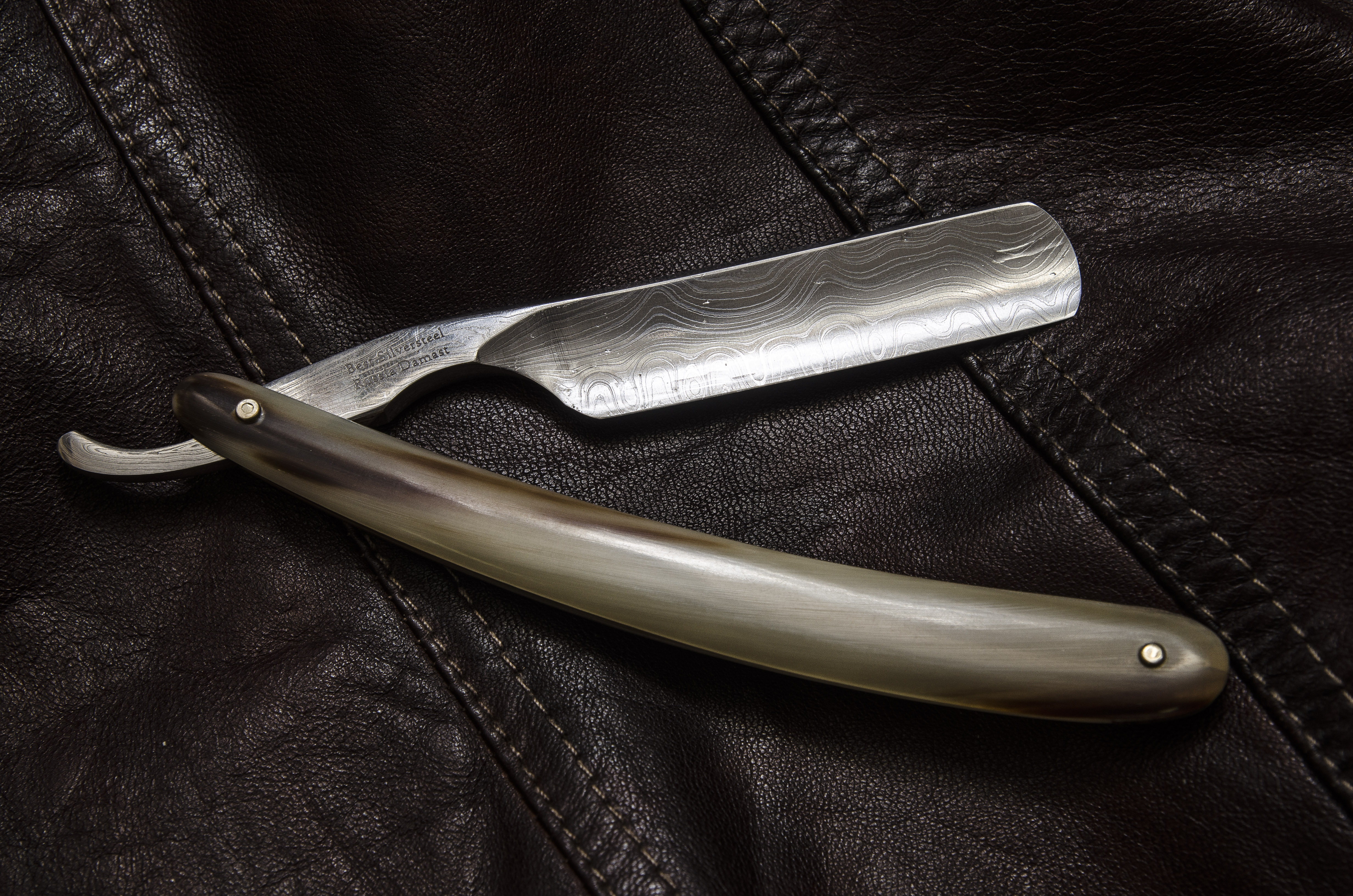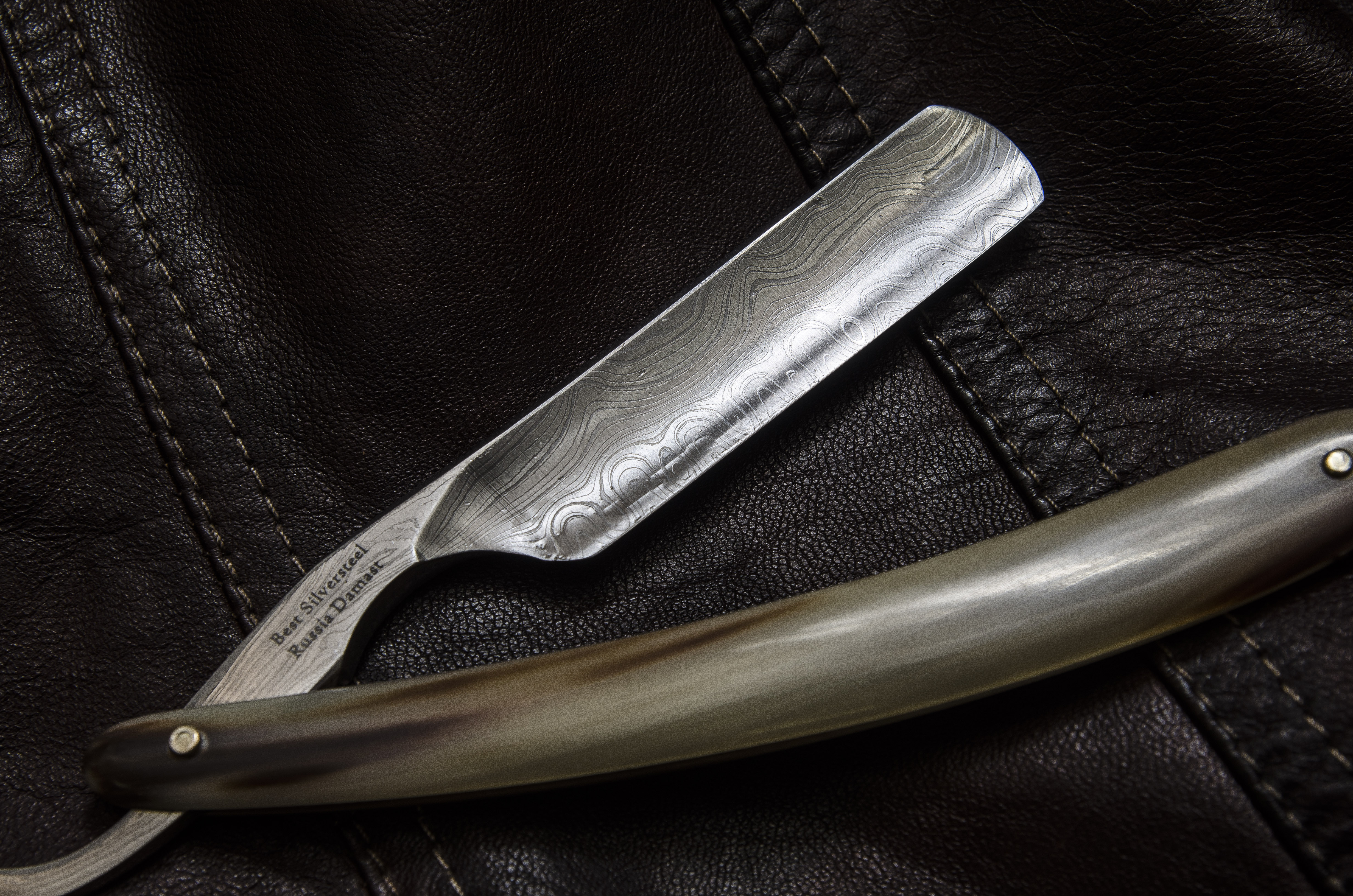 Лезвие бритвы изготовлено из редкой дамасской стали. Материал обладает безупречной прочностью, идеальной остротой и уникальным рисунком на полотне лезвия. Превосходная гибкость и заточка обеспечивают отличное скольжение по коже лица, приятное и чистое бритье.